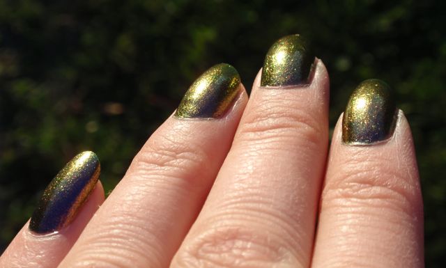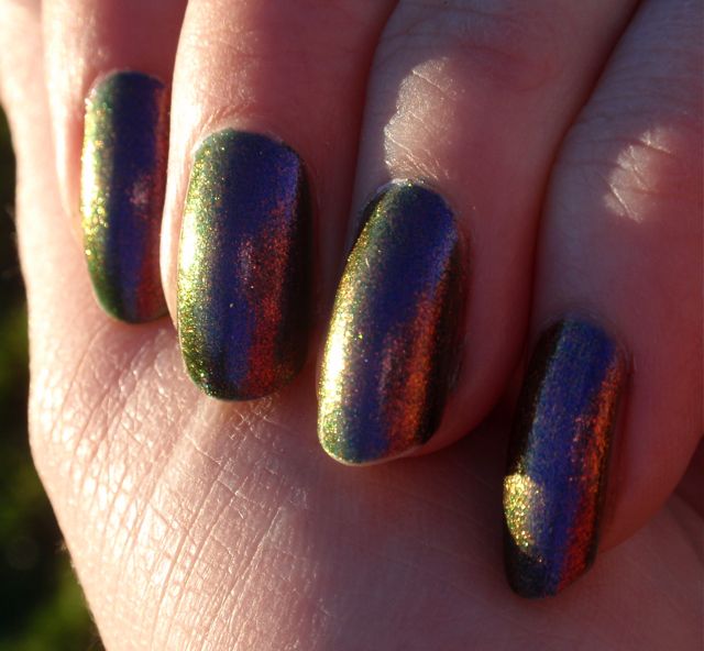 Ja, det är verkligen ett häftigt lack, helt unikt i min (i o f s tämligen modesta) samling! Och det måste definitivt ses med egna ögon, det går inte riktigt att fånga på bild.