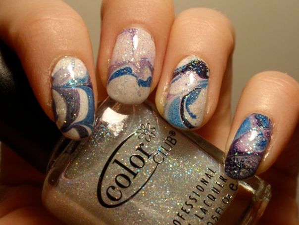 Hej, jag har provat lite olika sätt också med vattnet och märkt att det har inte så stor betydelse, mer att man hinner doppa nageln innan färgerna börjat torka i koppen.. och det blir snyggt med många tunna ringar färg så det blir ju lite stressigt men träna på:)