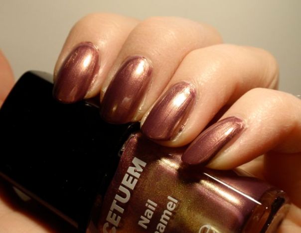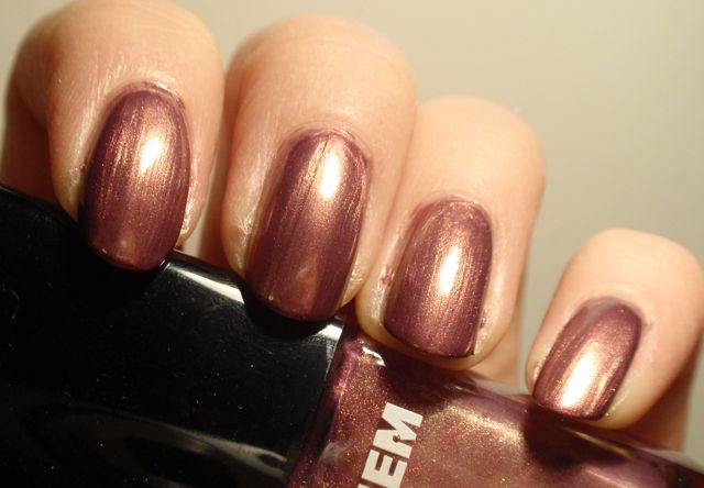 När jag öppnade senaste paketet från Nailmail och såg det här lacket var min spontana reaktion ”hur gick det här till?”. Det här är verkligen, verkligen inte min färg. Det är i o f s en ganska fin färg. En mild gammelrosa, eller kanske lite lilarosa. I flaskan ser den ut att ha lite guldig duokrom effekt, men det syns inte mycket på nageln. Men den är alldeles för snäll för mig. Det blev ett test, några bilder och sedan åkte den av. Den kommer att ges bort till mamma. (Som i o f s inte använder så överdiskreta färger jämt heller, men hon kanske får användning för den här någon gång, vilket inte jag lär få.) Formulan var ok, tycker jag, lite rinnig men hanterbar.Däremot blev det tydliga penseldrag, det var inte så kul. Det är dock ett helt ok lack, bara inte min färg. (Jag tror att jag trodde att den skulle vara brun, det är enda förklaringen till att jag beställde den. Den ser lite mer brunaktig ut på bilderna än vad den är i verkligheten, det skulle kunna förklara saken.)