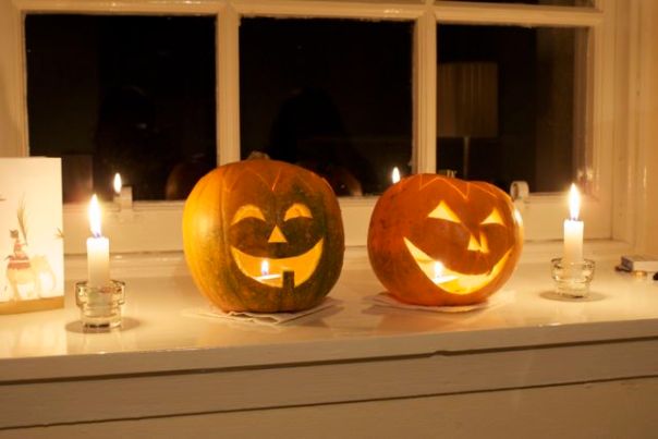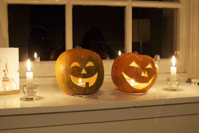 Och så för att ge lite halloweenstämning – de urtjusiga pumporna vi karvade ut igår: