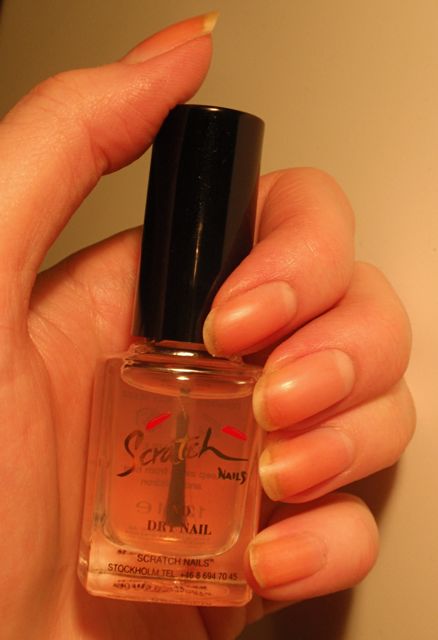Jag har använt Scratch Dry nails i 3-4 år och de har aldrig varit så här bra och skivat sig så lite 🙂 Jag använder det som underlack, men ibland, när själva färgen blivit matt, även som överlack. På detta sätt sitter nagellacket i ungefär 6 dagar utan att flaga, oavsett vilket märke själva nagellacket har.