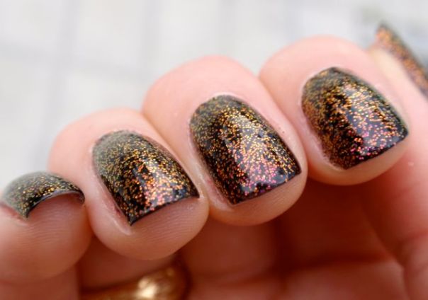 Yet another fantastic Ozotic Pro polish! This is a multichromatic glitter that shifts from green to gold to copper to purple to red. Just marvellous! I got comments on this polish from men who usually don’t even notice my nails, it was that special. I just wish it was mine… (I borrowed this from a friend.)