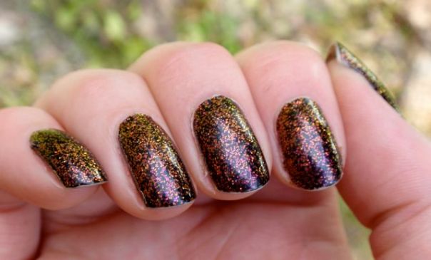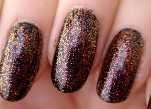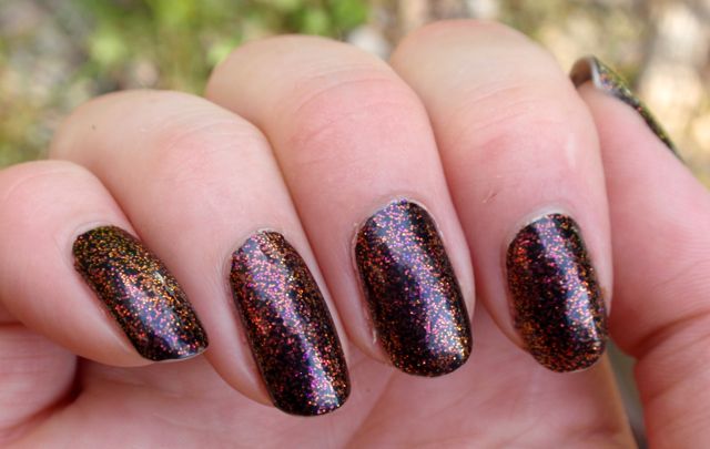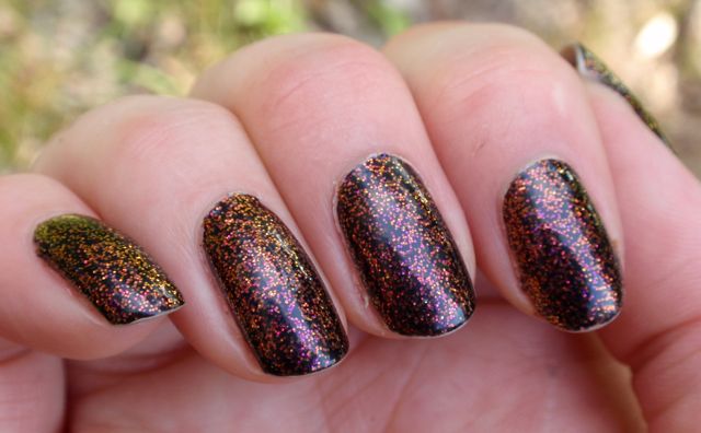 Jag tycker nästan att det här är ännu snyggare än de multikromatiska. Nästan, jag är inte säker… 🙂 Men man får liksom både den multikromatiska effekten *och* glitter – två bra saker istället för en!