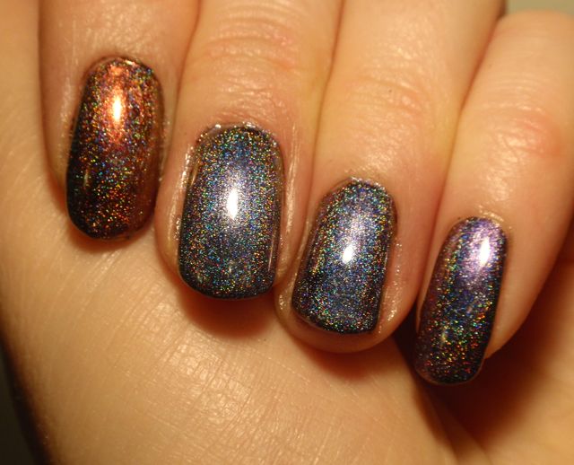 Överlag är det väldigt läckra lack! De har en tydlig holoeffekt som syns även inomhus. Det är nästan så holon dränker den multikroma effekten lite grann, men inte mer än att de är klart multikroma. Mycket fina!