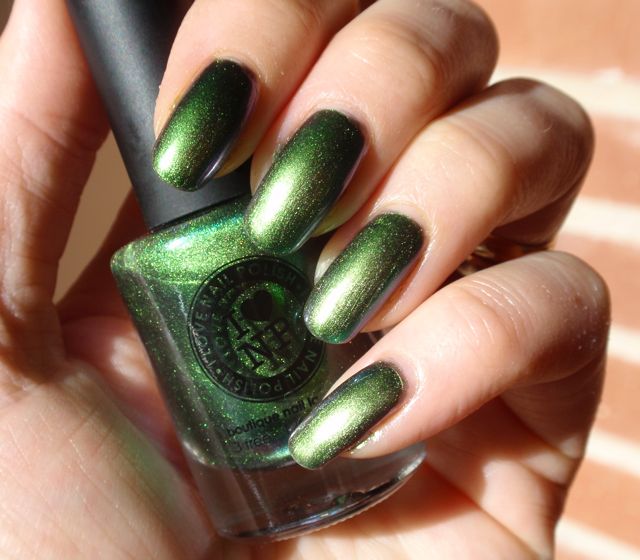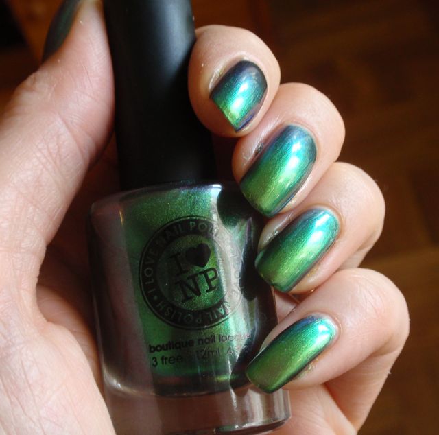 Jag har, som jag har sagt tidigare, en del lack från I Love Nail Polish som jag inte har visat er än – och tjusiga lack är det! Jag har redan visat Birefringerence och A Fresh Evergreen, och här kommer en drös bilder på Mutagen. Det är ett mycket vackert multikromatiskt lack som är grönt i basen, men skiftar från grårosa till grönt, blått och lila. Jag har flera lack som skiftar i samma färgskala; Hits Chameleon, Ozotic 503 och Lurudana Admiravel, men det här är mest dramatiskt och har väldigt tydliga skiftningar. Jag skulle alltså säga att jag faktiskt ändå behövde det här!