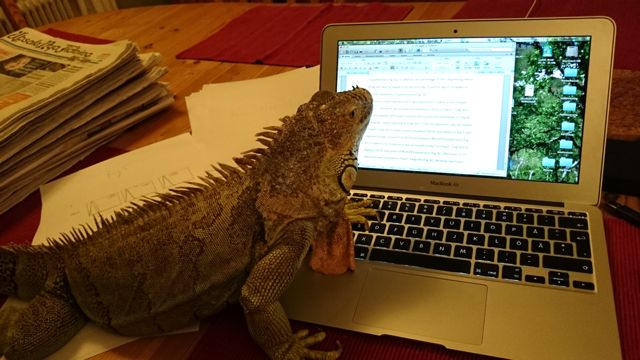 My green iguana Katla was helping me with the research the other day… She actually wrote a bit on the manuscript (although it must have been in Lizard since it really didn’t make that much sense to me. :-))