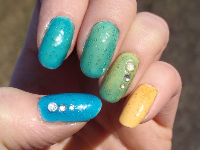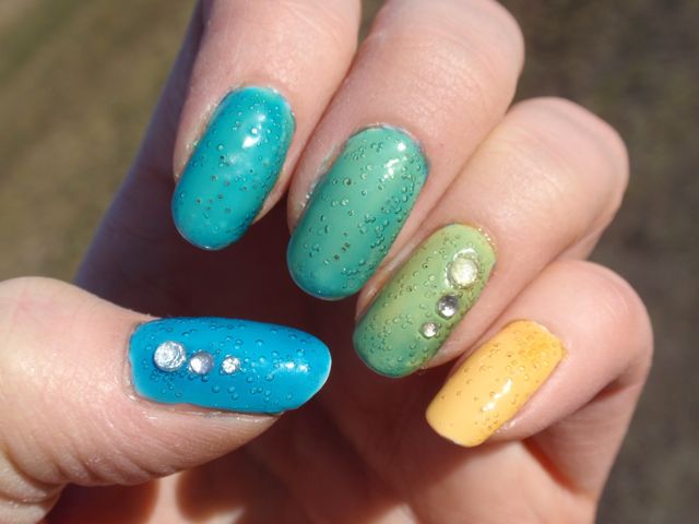 2. Fina färger och en ritkgit kul idé för de här lacken. Jag tycker inte bubblorna ser så hemska ut, mer som en kul dekordetalj men troligen ser det inte riktigt lika kul ut i verkligheten.