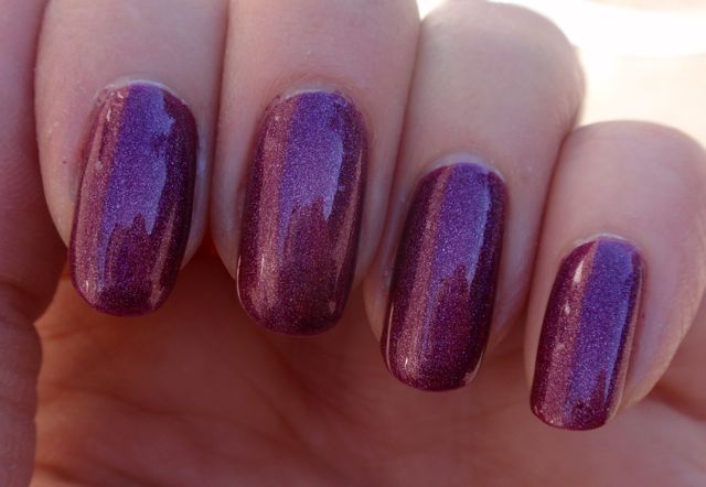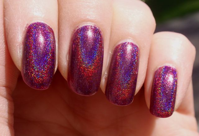 Colors by Llarowe is a lovely reddish purple with some serious rainbows. I don’t remember if I had two or three coats, but application was nice enough. Lovely polish!