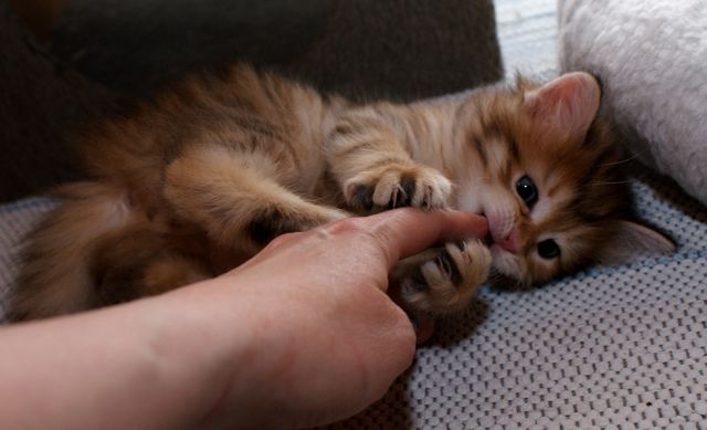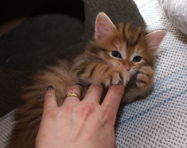 My mom is breeding siberian cats, and right now she has a litter of sex five week old hooligans, so as a bonus you’ll get some pictures of when Hjalmar is doing his best to destroy my manicure. 🙂