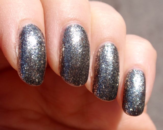 Mitt sista bidrag till United in Grey blir ett härligt silverglitter från Pahlish. Graphite består av smått, lite oregelbundet glitter i silver och mörkgrått i en klar bas och täckte faktiskt på två lager eftersom det var väldigt tjockt med glitter. Det var lite klumpigt att applicera, men det hade man nog förväntat sig också. Jag gillar det verkligen och tycker att det känns väldigt metal eftersom det skiftar lite mellan svart och silver. Jag har det fortfarande på tårna, och det passar väldigt bra som pedikyr.