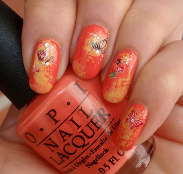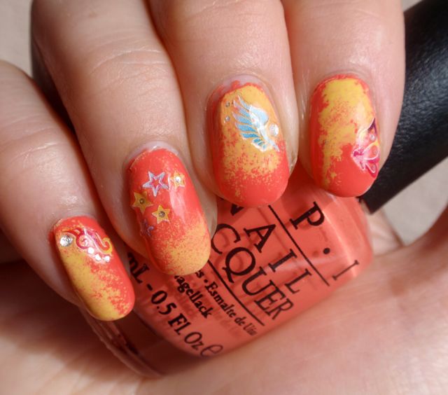 Publicerat på juli 31, 2014, i Dekaler, Naglar i guld och gult, Naglar i orange och korall, OPI, Svampning. Bokmärk permalänken. 2 kommentarer.
