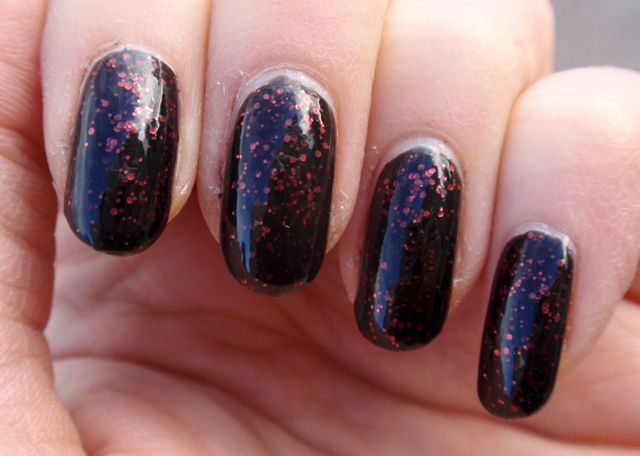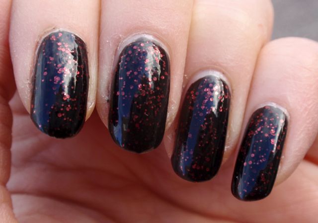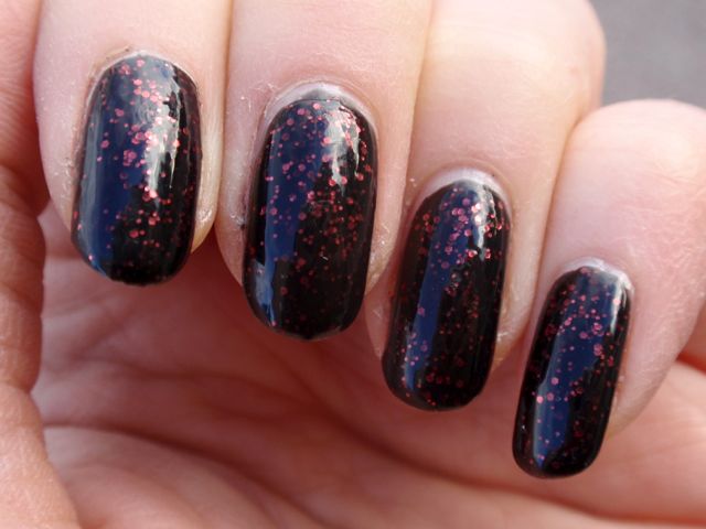 Så har vi kommit fram till T i Lacky Corners ABC Challenge, och här blev det OPI Today I Accomplished Zero från Icons of Happiness-kollektionen som fick komma fram ur gömmorna. Det här är faktiskt det sista lacket i kollektionen som hamnar på mina fingrar, vilket är märkligt med tanke på att det var det lack jag var mest sugen på när jag fick den. (Jag har alltså fått den för recension.) Nu när jag bar det var jag faktiskt inte heller så imponerad. Det är ett svart lack med smått glitter i rödrosa. Jag har sett liknande lack förr, och det hade gärna fått ha lite mer variation i glittren för att bli lite liknande. Med det sagt så har de ändå gjort ett svart glitterlack som täcker på tre lager utan att dränka glittren, och det är ju inte så illa ändå. Det var också lätt att applicera.