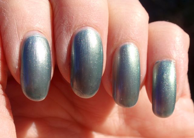 It is the second to last day of Lacky Corner’s ABC Challenge and we have come to the letter Y, but it is also allowed to show a polish that has a number instead of a letter. I’m showing a polish that I bought in Prague almost two years ago, but that I never really felt like wearing. It is actually nicer than I thought. The base is an icy light blue, but it shifts into purple and green. Application was good. I wore three thin coats. It did show some streakiness, though, and I got quite a lot of tip wear, but considering the price, I still think it was a nice polish.