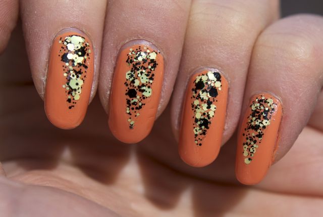 Today is the last day of Lacky Corner’s ABC Challenge! Today’s letter is Z, and I actually had a polish in my mind for it, but I didn’t get the time to apply it, so I’ll show a numbered polish instead. This is another of the glitter polishes I found at the Cracow airport, HEAN.pl 266, a clear base with black and lime green glitters. I think it is quite nice! I matched it with OPI Is Mai Tai Crooked? from the Hawaii collection, which is a pretty orange creme with coral tones. I wore three coats and the application was ok.