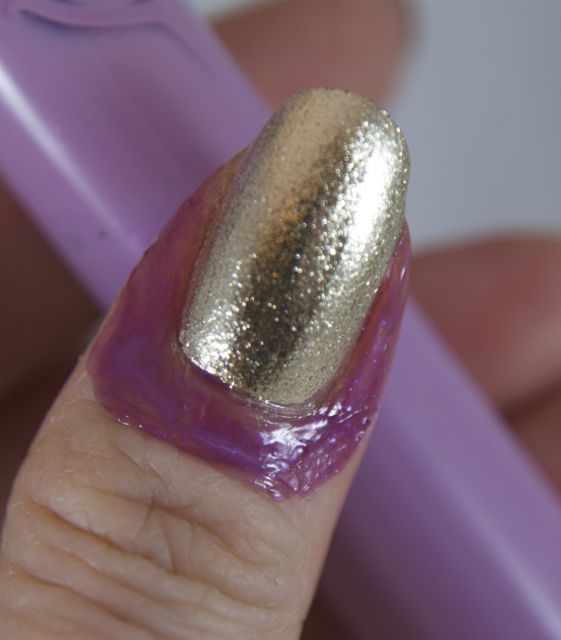 Liquid Palisade is one of the first versions of liquid barriers that you use to cover the skin around your nail, thus reducing clean-up. It is really quite clever! Liquid Palisade dries to a dark purple, which is practical since you can see exactly where it is and push it away if it is anywhere it shouldn’t be. It dries fairly quickly, but it is very sticky even after it’s dried, so it is easy to get your fingers stuck together. As with all these liquid latex products, you should remove it before the polish is dry, but it still has a tendency to leave some stragglers. It has a quite thin brush, which is good for detail work, but annoying when you want to cover your whole fingertip. However, Kiesque has now released a version with a thicker brush as well.