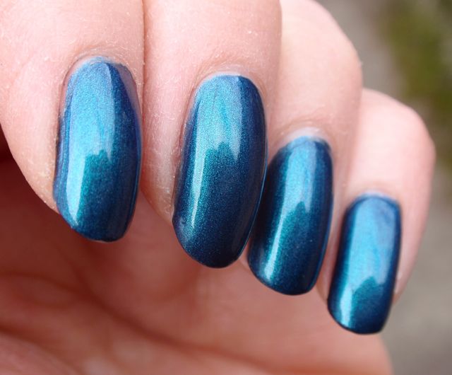 ILNP gör många fantastiska lack, men det här är faktiskt inte ett av dem. Det är vackert, men det är inte spektakulärt, och jag har börjat förvänta mig spektakulära lack från dem. Det är en fint mättad blå duokrom som skiftar mellan blågrönt och blålila. Skiftningarna är ganska diskreta, inte så in-your-face som många av deras andra lack. Jag bar två lager av det.