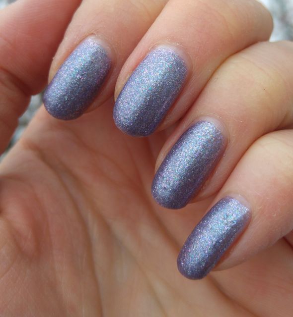 In English: The further my nail addiction goes, the harder it is for me to decide if a polish is discreet or not. The other week, I needed a discreet polish for work and picked Nerdlacquer Queen, which in my eyes is a pretty discreet blue-lilac-grey with multicoloured micro flakes. It has a slight duochrome effect and shifts between blue and purple. Very discreet, right? Not very colourful or in-you-face. No holo or glitter to speak of. But still it happened twice that I caught people staring at my nails! I obviously suck at discreet manicures. 😛