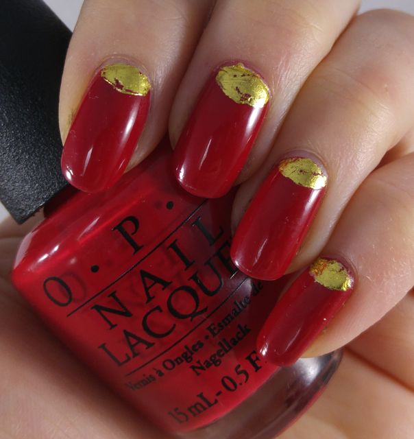 Published at 604 × 640 in Nail Art Sunday: OPI Love is in My Cards with nail foil half moons