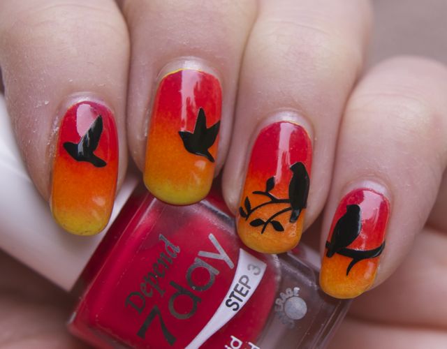 Published at 640 × 500 in Sunset and birds with the Depend neons