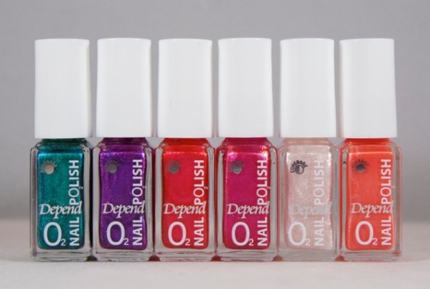 In English: The summer collections from Depend has arrived, and I must say that I am much more enthusiastic about them than the spring collections. There is still quite a lot of pink, but the colours are stronger and more fun. And there are some gold nuggets in With love from Cuba. The green number 519 is wonderful! I am wearing it at the moment and am in love with it. Purple 520 is also beautiful and the blue 514 is not bad, either. The collection also contains a green creme, but the delivery of it was delayed, so it was not included among my press samples. Half of the collection are cremes and half are shimmers, which I like since I generally prefer shimmers. What do you think of it? Which are the most interesting to you?