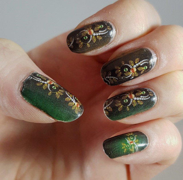Published at 640 × 630 in Christmas Eve nails with water decals