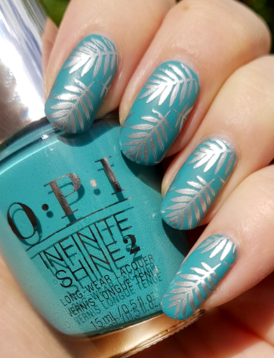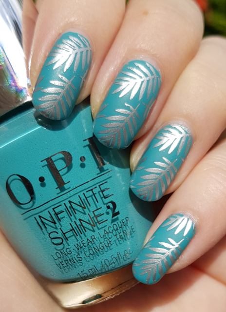 Jag stämplade med ett stämplingslack i silver från Born Pretty Store och plattan Lovely Leaves 2 från ÜberChic Beauty och avslutade med att göra det matt med ett matt överlack från Depend (också ett pressprov).