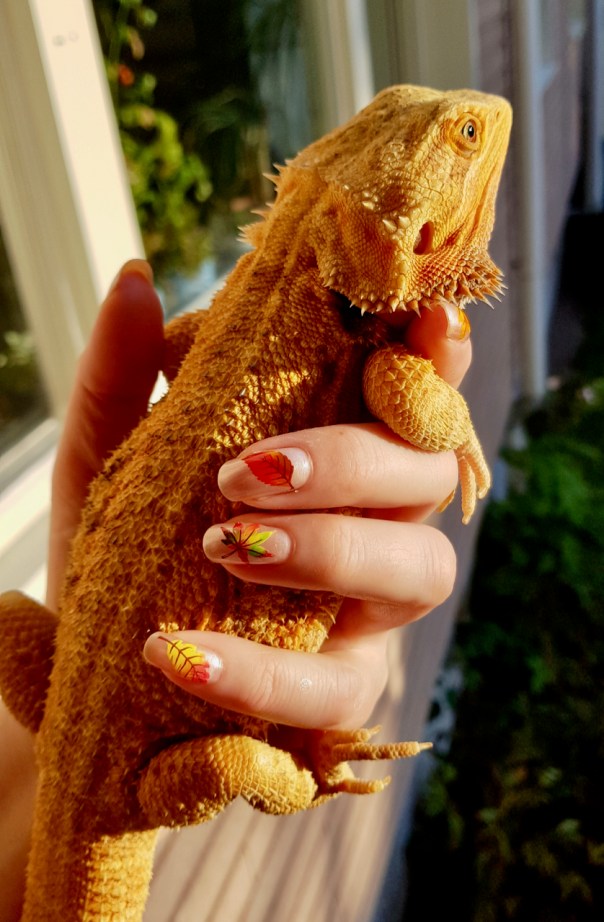 You will get a bunch of Smaug pictures as well. This was when he still had some energy and got to be outside to get some sun. Now, he is also tired from the lack of light and sleeps most of the days. He is not in full brumation (as some beardies are), but there is not much happening.