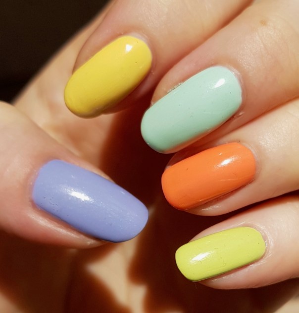 Det här är faktiskt manikyren som jag har på fingrarna just nu och stortrivs med, trots att den är pastellig och glad och somrig. Det kanske är så att man behöver glada och somriga naglar nu när eländesviruset härjar i världen.