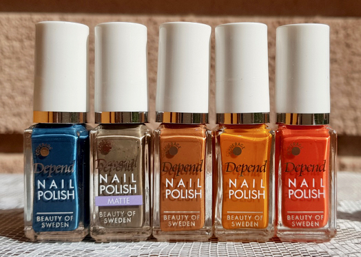 Depends Rethink är en ganska klassisk höstkollektion, skulle jag säga, men med en del lite oväntade inslag, som det knallgröna 645. Men jag klagar inte – det lacket kan nog vara det jag tycker mest om. Som vanligt hade jag önskat en större variation i finisharna. Det finns ett matt lack, men resten är krämlack, och jag ser inte riktigt vitsen med matta lack. Jag vill ändå använda ett snabbtorkande överlack (för vem orkar vänta på att lacket torkar?) och om jag vill ha det matt lägger jag bara på ett matt överlack på slutet. Men det är jag, det.