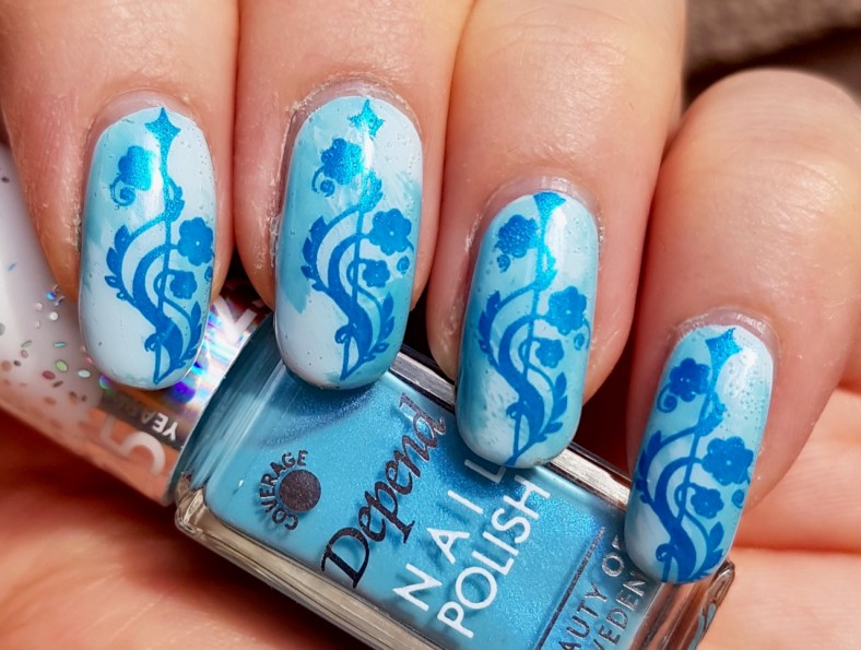 Published at 1280 × 968 in Blue dry-brush stamping with Depend From a Different View and 610
