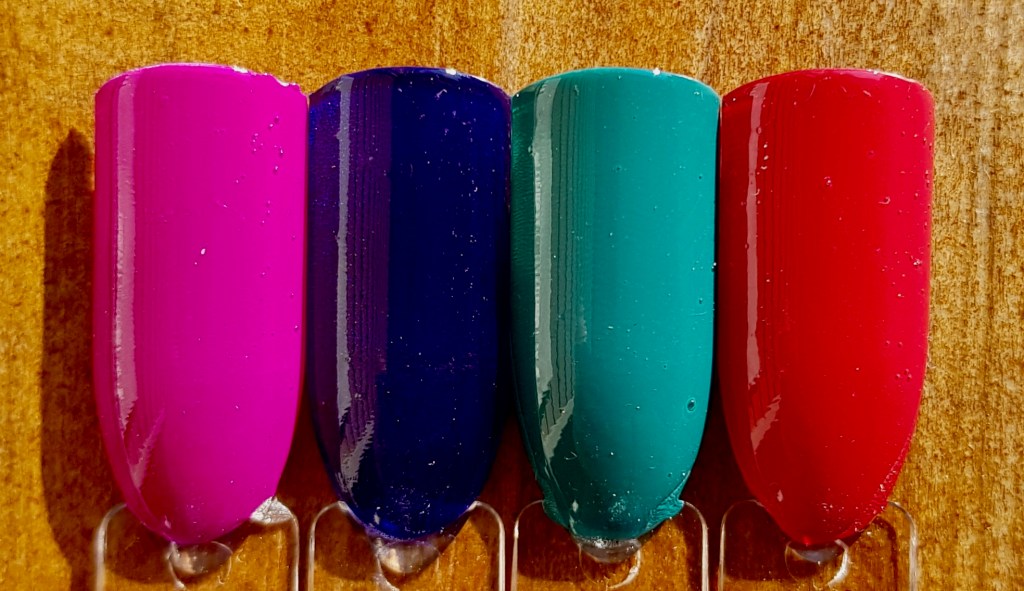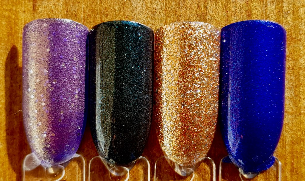 The polishes were a bit difficult to photograph, though, and the close-ups came out a bit too light. The fan picture is the most colour accurate.