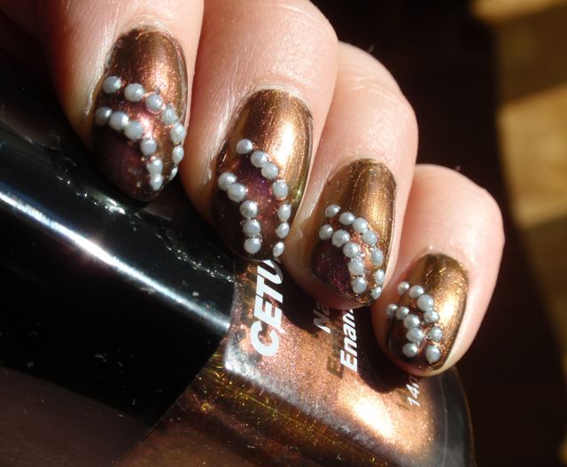 Dekoren var små halva fejkpärlor från eBay. Säljare var Tamanala, som bara var ok att ha att göra med. Trots flera meddelande då jag bad om att få mina olika beställningar sammanslagna för att kunna slå ihop portot så hände ingenting och jag fick betala portot för två paket. Nu handlar det ju inte om så mycket pengar, med det var lite irriterande.