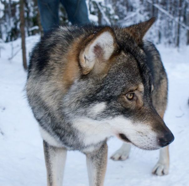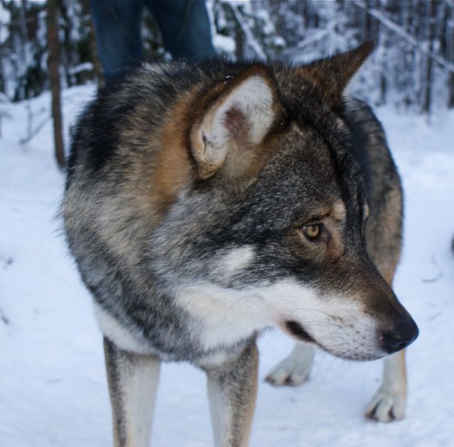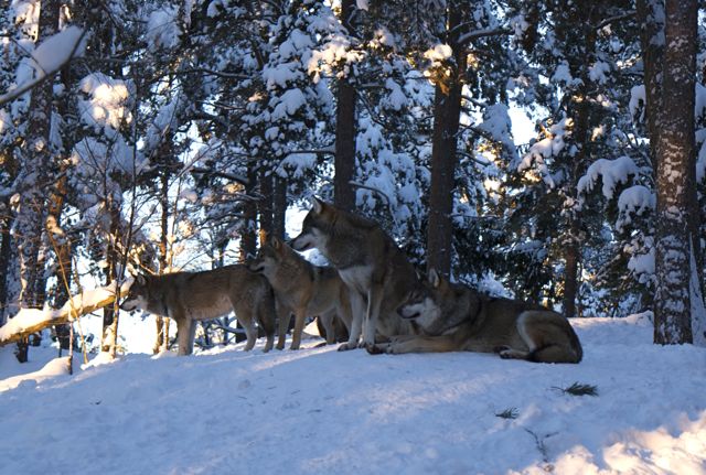 Sedan gick vi på vargklappningen. Vi fick träffa en flock på nio hanar på 1,5 år. De var i värsta slyngelåldern och hittade på en del hyss, som att tugga på folks kläder, försöka sno kameror o s v. De testade sina skötare hela tiden för att se vad de fick och inte fick göra! Vi fick inte ha på oss mössor och vantar, så det blev rätt kallt, men det var det värt för att komma nära så fantastiska djur! (Mössorna knycks tydligen raskt och blir vargleksaker, och vantar gör att vargarna inte fattar att man har händer i dem så de har en tendens att leka för hårdhänt.) Vi var inne hos flocken i ungefär en timme. De var ganska nyfikna – de kom fram och hälsade genom att slickas i ansiktet och blev gärna klappade. Men det märktes att det inte var tamdjur, de har ett otroligt tydligt kroppsspråk och gör ju inte direkt som de blir tillsagda. De är så otroligt vackra djur, jag kan verkligen rekommendera alla att göra ett sånt besök!