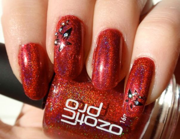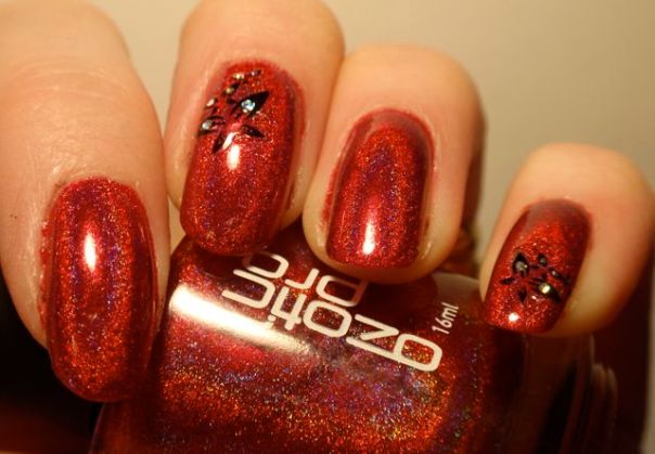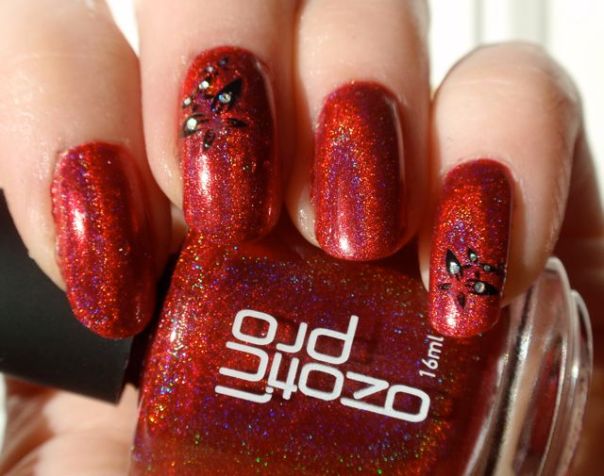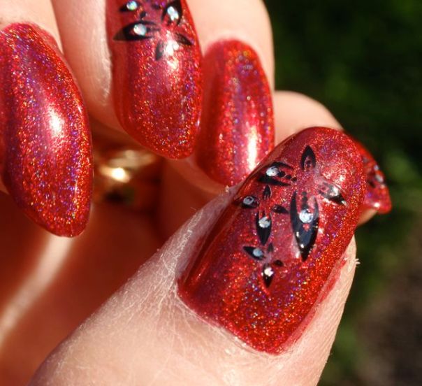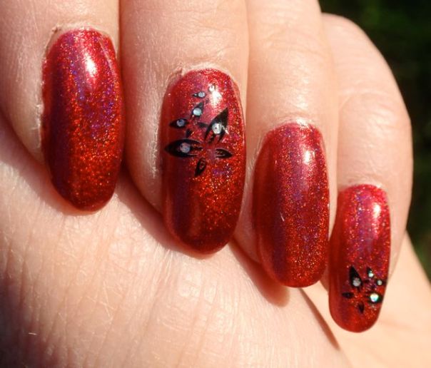 This is a truly magnificent polish with gorgeous rainbows on a rich red base colour. It makes me go around staring like a fool at my nails when I’m outdoors. It’s just amazingly beautiful!
