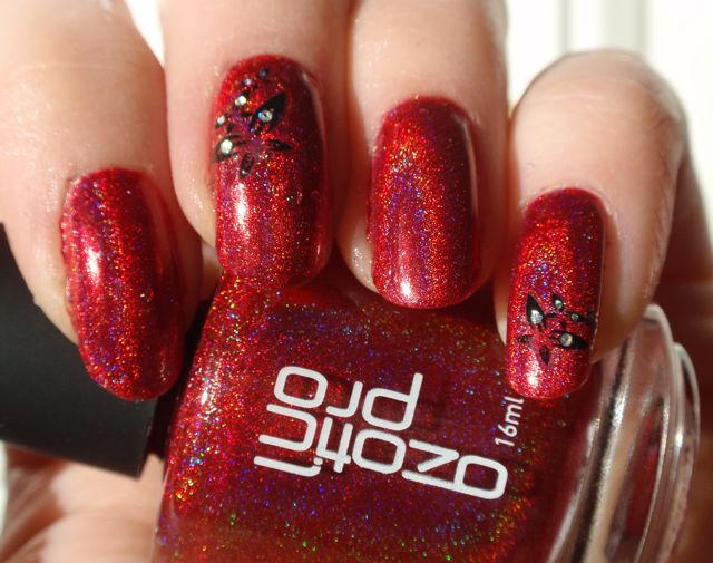 Det var det här lacket som fick mig att upptäcka piCture pOlish och startade min senaste köphysteri. Sminkan visade det för ett tag sedan och det är bara så otroligt tjusigt. Det är ett sånt där lack som får en att gå och stirra dumt på sina naglar när man är utomhus. De flesta holografiska lack jag har är så bleka, och jag är ju inte så förjust i ljusa lack, men Ozotic Pro kan faktiskt göra präktigt holografiska lack i mörka nyanser. (Jag har precis fått hem ett svart som jag inte hunnit prova än, men som ser helt groteskt snyggt ut i flaskan.) Regnbågarna i det här lacket är otroliga. Basfärgen är egentligen lite för rosatonad för min smak men jag älskar det ändå.