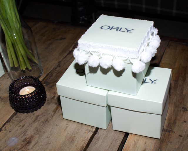 Såna här små lådor stod utspridda i lokalen, och i dem fanns hela vårkollektionen! Det tog faktiskt ett tag innan jag vågade mig på att titta i den. Tänk om det bara hade varit tråkiga pastelliga krämlack! Nu var den visserligen en del av lacken åt det pastelliga hållet, men de är en aning smutsiga i tonen så jag gillar dem faktiskt ändå.