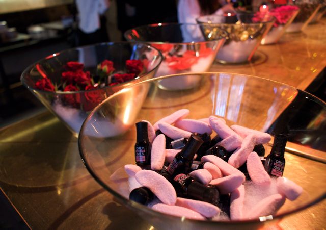 Skålar med smartgellack som vi fick plocka 2-3 lack från. Det var väldigt fint arrangerat med tillbehör i varje skål i en färg som matchade lacken.