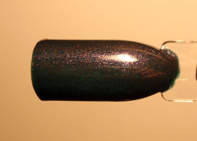 High on Hope: Mörkt petrolblått med skimmer i rosa. I flaskan tyckte jag att skimret nästan såg lite duokromt ut, men det ser jag inte på swatchstickan. Fint är det i alla fall! Lite udda lack i en vårkollektion, men jag protesterar inte! Jag har ju mörka lack året om, hela tiden!