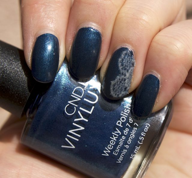 CND Vinylux Peacock Plume efter en vecka och Indigo Bananas Green Glow