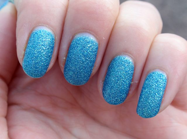 Ocean Crush är ju ett lack som de flesta redan har sett, men det är ju fint för det! Det är ett havsblått strukturlack med skimmer i grönt och det gnistrar fint i solen. Det täckte på tre lager och torkade fort. Jag tycker ju egentligen att Isadoras pensel är alldeles för bred, men eftersom det här var väldigt lättlackat gick det rätt bra ändå.