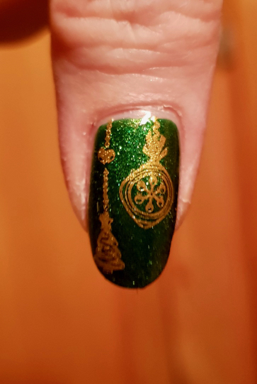 Jag stämplade med What’s Up Nails Go for Gild och stämplingsplattan KADS Christmas 028.