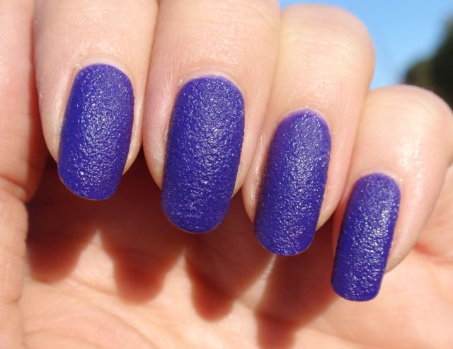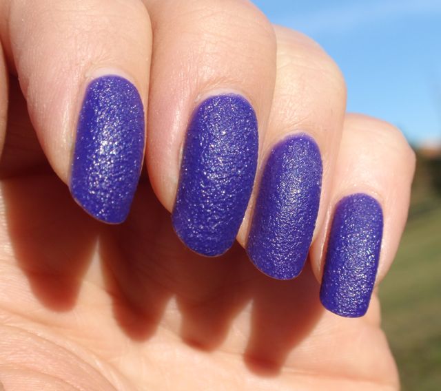 Mer från arkivet! Fördelen med att gräva i arkivet är att man får se bilder med lite sol… Det här lacket har jag annars inte så mycket att säga om. Jag har fått det för recension. Det är ett blåtonat lila sandlack. Rätt snyggt, men inte sådär att jag hoppar av lycka. Jag har noterat att jag hade tre lager av det men inget om hur det var att lacka med. Jag tror att det hade en trevlig formula och torkade rätt fort, men jag är inte säker…