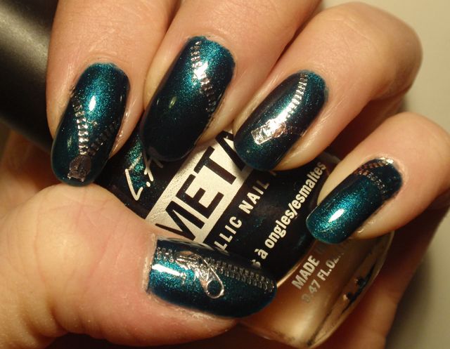 Lacket är L.A. Girl Metal Deep Sea Mica, och det har stått otestat väldigt länge på min hylla. Vet inte riktigt varför. Det är ett trevligt lack. Lite skirt, det krävdes tre lager för att det skulle täcka. En aning rinnigt, men hanterbart. Med tanke på priset kan man ju inte kräva perfekt formula på de här lacken, ändå. Det är mörkt grönblått, men ser ljusare ut på utomhusbilderna.