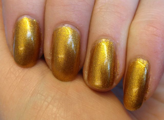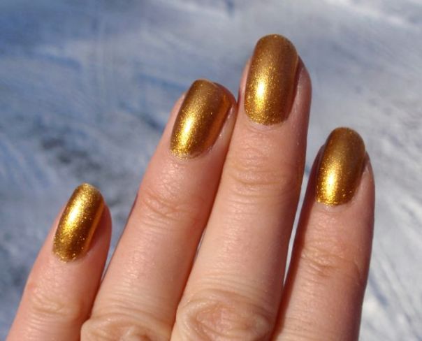 Även jag har fallit för rean på Cherryculture och införskaffat en bunt L.A. Girllack, alla från deras Metalkollektion. Skitläckra lack, faktiskt! De har en jättefin metalliclyster – i alla fall så vitt jag kan se på flaskorna. Jag har bara prövat ett, Gold Plated. Det är ett jättefint guldlack, och jag är lite glad över att äntligen ha hittat en ersättare till mitt gamla favoritguldlack (ett gammalt Yves Rocherlack som dels håller på att torka ihop så det har en hemsk formula trots förtunning, och dels börjar ta slut).Det är lite gulare i tonen än det lacket, men tillräckligt nära för att fylla hålrummet.
