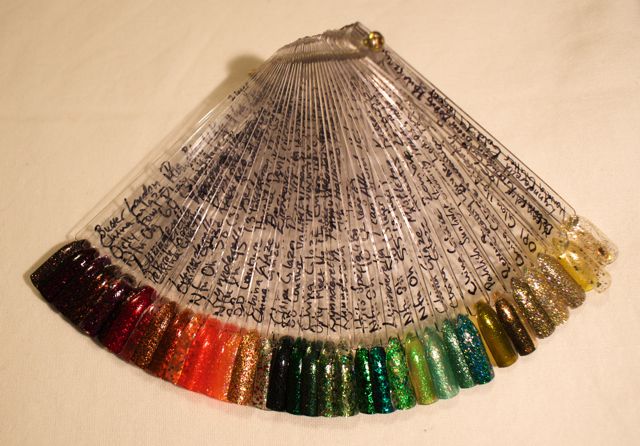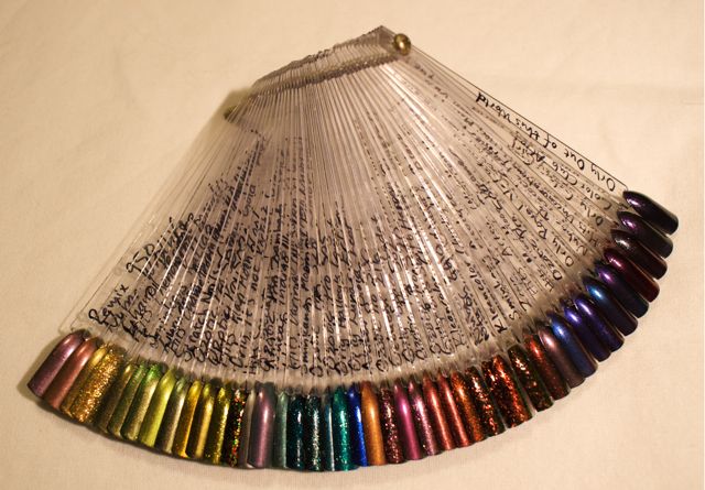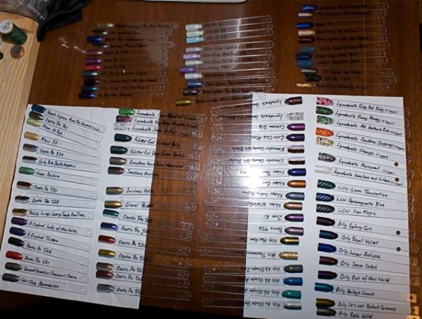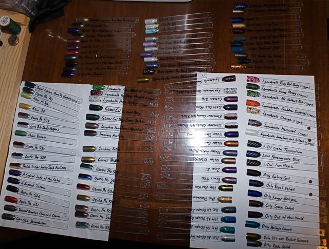Nu är jag till slut klar med sommarens vansinnesprojekt – att swatcha hela min nagellackssamling på stickor! Som jag skrev i ett tidigare inlägg köpte jag en massa stickor från eBaysäljaren Sunwebzone och har nu efter ett antal timmars idogt nagellackssniffande lackat upp alla lack på stickorna. Det har varit riktigt kul (med undantag för sniffandet, då, jag blev lite illamående efter ett tag) eftersom jag har fått gå igenom vad jag har och jag har återupptäckt massor av fina lack! Jag borde nog hålla i mig lite vad gäller nyinköpen så jag hinner använda de gamla lacken också.