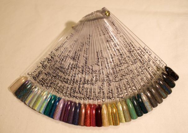 Det här är mest mina holografiska och duo/multikromatiska lack, men det är lite glitter och annat inblandat också. Det var faktiskt väldigt roligt att gå igenom alla fina lack jag har och njuta av dem igen! Fast jag blev nästan lite hög av nagellacksångor. Det kan inte riktigt vara nyttigt att sniffa nagellack i tre timmar… 😉