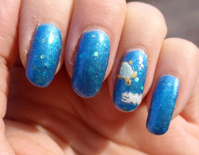 Dekalerna är från Scratch Nails och är riktigt söta. De är av ganska tjockt gummi men är mjuka och fäster bra. Jag vet inte hur det är med er, men jag blir lite glad av att ha fiskar på naglarna. 🙂