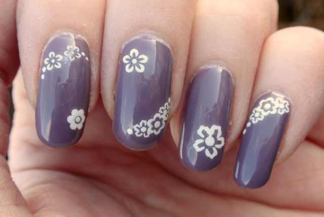 Unfortunately I lost a battle with a cardboard box while wearing this, so my pointer nail broke very close to the nail bed before I had time to photograph it properly. I had taken av few pictures with my compact camera before it happened, but those turned out a little too blue. I edited them and included one just to show you the purple tones in it.