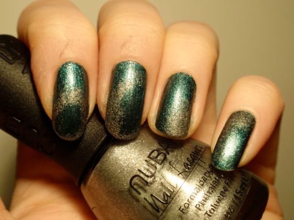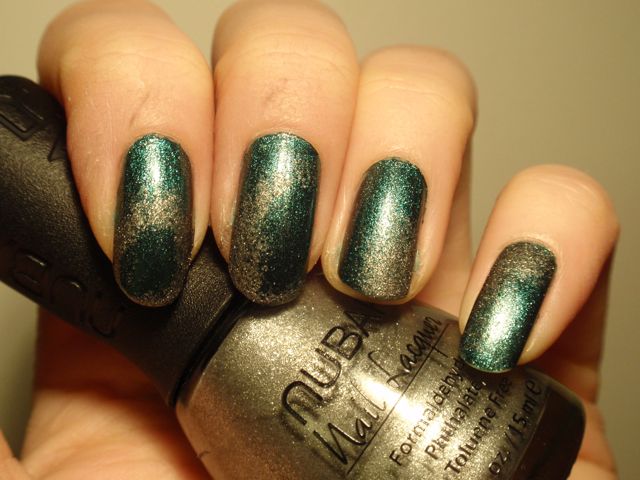 This is the manicure I did for my friend Liv for her wedding. She had a green dress, so I matched it with a gradient in green and gold. I started with L.A. Girl Metal Gold Plated and then sponged Nfu Oh 125 and Nubar Greener. I think it turned out quite well.