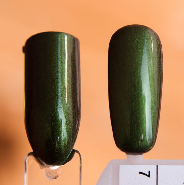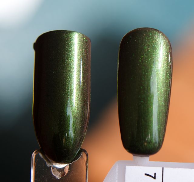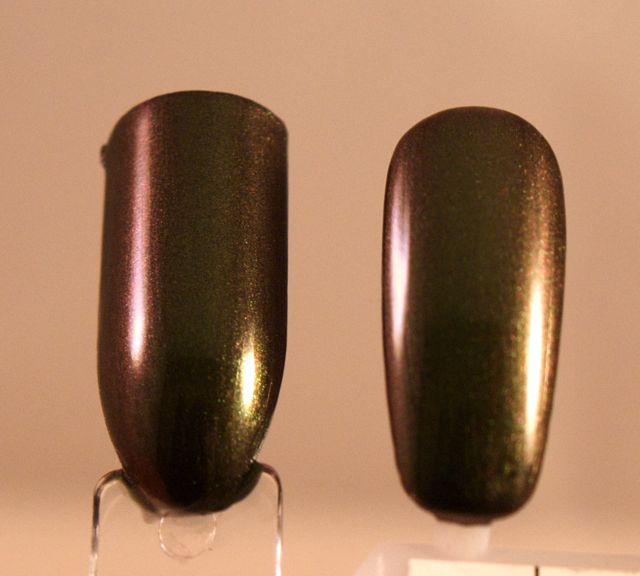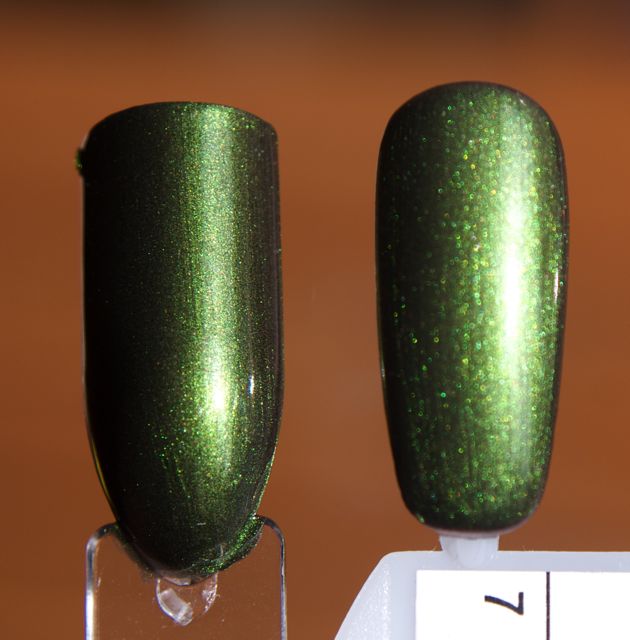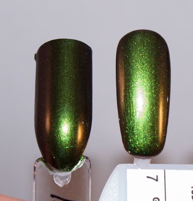Green on the Runway – very pretty duochrome with a deep forest green base colour that shifts to a reddish purple. Definitely the star of the collection! (Inspired by Sprite.)